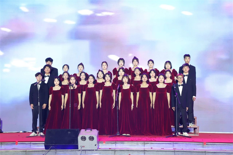 歌曲《如愿》仿佛穿越时空的阻隔,以跳跃的音符向先辈诉说盛世繁华如你所愿。师生千人挥舞着五星红旗合唱《歌唱祖国》,歌声激昂、旋律高亢,为晚会划上完美的句号。