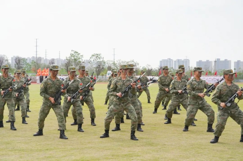 晨曦与旗帜交相辉映,热忱与戎装熠熠生光。武装部八一连带来团体舞《出征》震撼开场,演绎了“出征”的非凡气魄,激荡起催人奋进的力量。