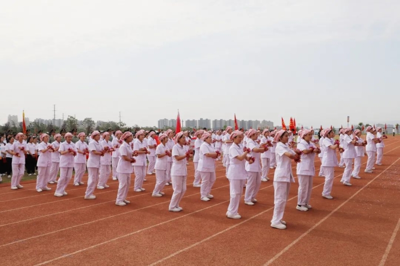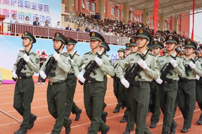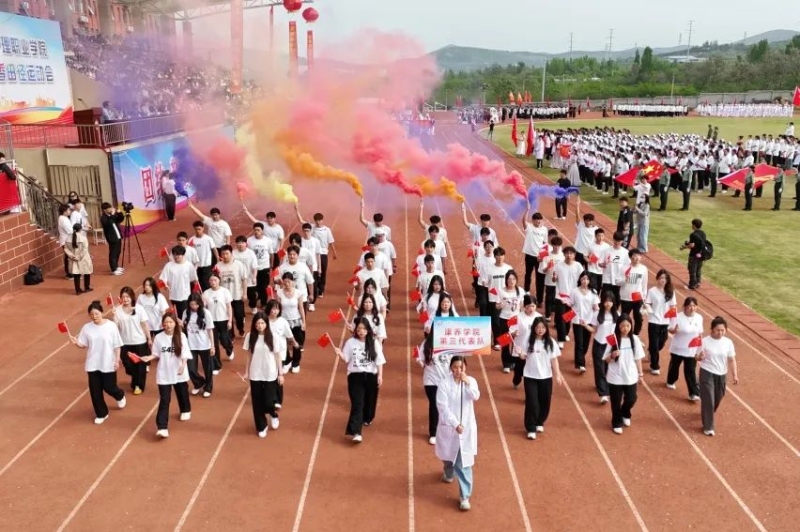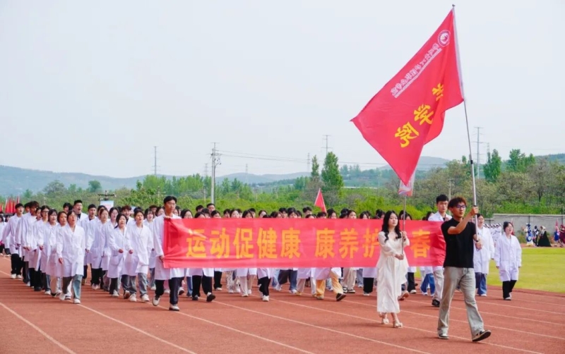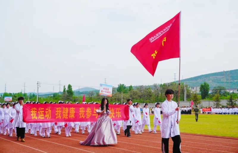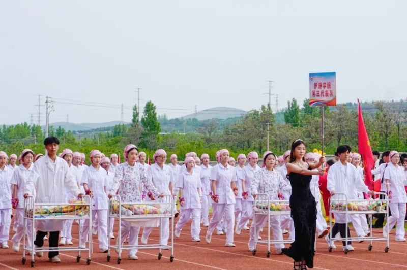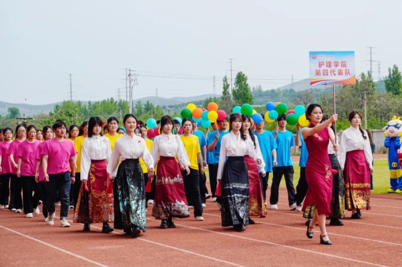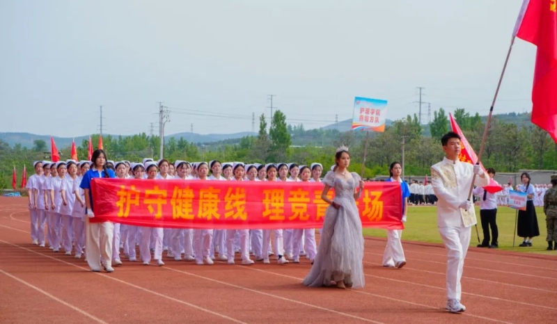 中专部、教育学院、药学与医学技术学院、康养学院、护理学院代表队接续入场,他们高举着旗帜,结合自身专业特色的表演,活力四射、精彩纷呈,为大家呈现了一场视觉盛宴。