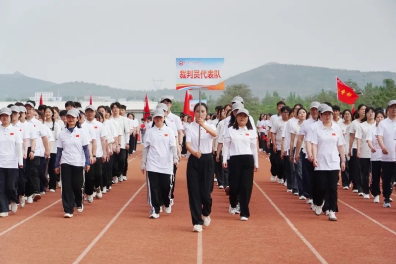 裁判员代表队和教职工代表队步伐整齐、精神抖擞,充分展示了我校师生团结协作、积极向上的精神面貌,赢得了现场观众的阵阵掌声。