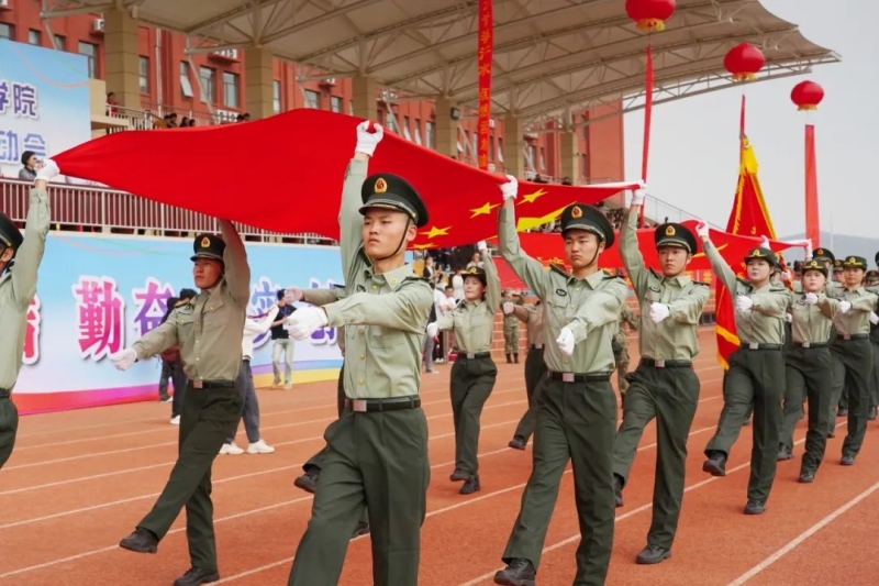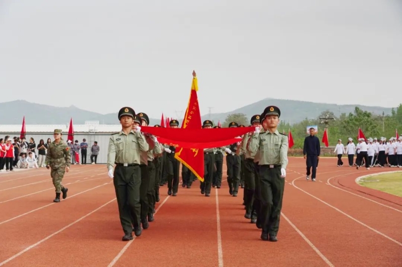 以青春护卫旗帜,以忠诚诠释使命。护旗方队迈着整齐划一、铿锵有力的步伐率先入场,他们昂首阔步,身姿笔挺,庄重威严,每一步都是对初心的坚守,每一步都踏出自信与青春的风采!