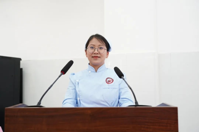 随后,学生代表2023级护理1班宗子涵发言,表示将以受表彰的师生为榜样,在学习中夯实基础、在实践中锤炼本领,用实际行动诠释护理职业的价值与荣光。教师代表郑曼华发言,勉励同学们将今日的誓言转化为终身学习的动力,在未来的临床实践中厚植专业根基、永葆职业热忱。