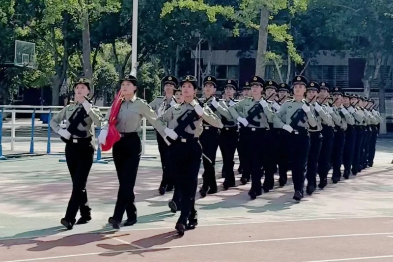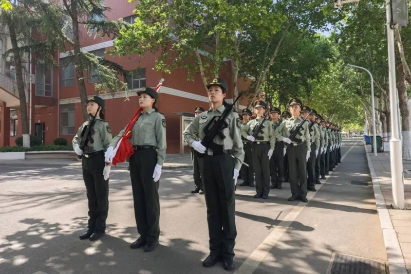 我校八一连国旗护卫队将军旅文化的严谨肃穆与青年的蓬勃热血融于双肩,他们步伐坚定,肩擎国旗,以挺拔之姿迈向升旗台,我校护旗手将国旗郑重交予郑州外国语学校国旗护卫队队员,这一交接不仅是仪式的延续,更是爱国情怀的薪火相传。军旅精神的刚毅与校园青春的朝气在此刻交汇,共同勾勒出新时代青年对家国的赤忱担当。