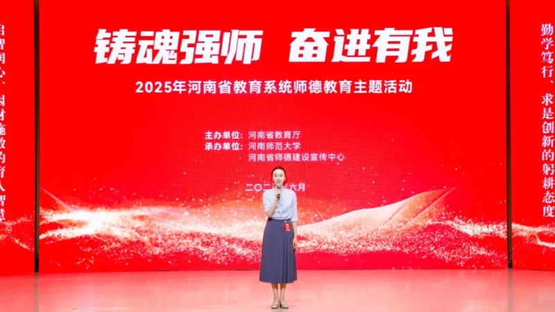 6月13日,2025年河南省教育系统师德教育主题活动演讲比赛在河南师范大学落幕。我校教师张咪凭借其出色表现,从全省选手中脱颖而出,荣获高校教师组一等奖。