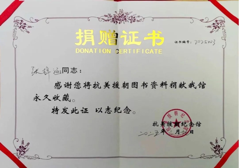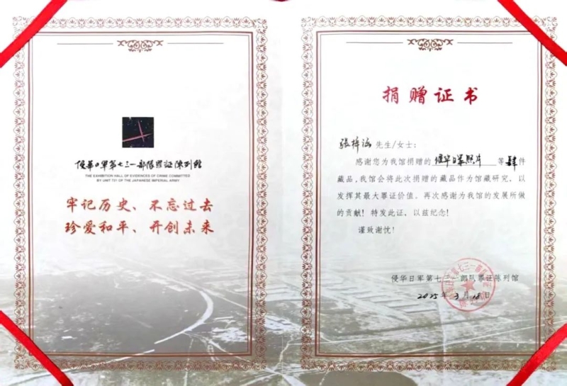馆方在接收这批文献资料后,特向我校张梓涵同学颁发证书以示感谢与鼓励,并表示她这一举动不仅为研究抗战及相关历史提供了珍贵的资料,更展现了新时代大学生铭记历史、勇于担当的精神风貌。