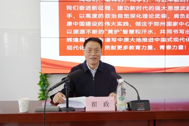 10月22日,郑州市政协党组副书记、副主席翟政莅临我校新密校区,为我校师生讲授思政课。学校领导马明芬、张运克、蒋春梅以及师生代表现场聆听学习。