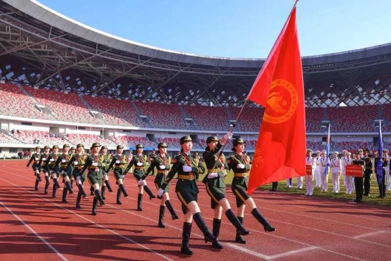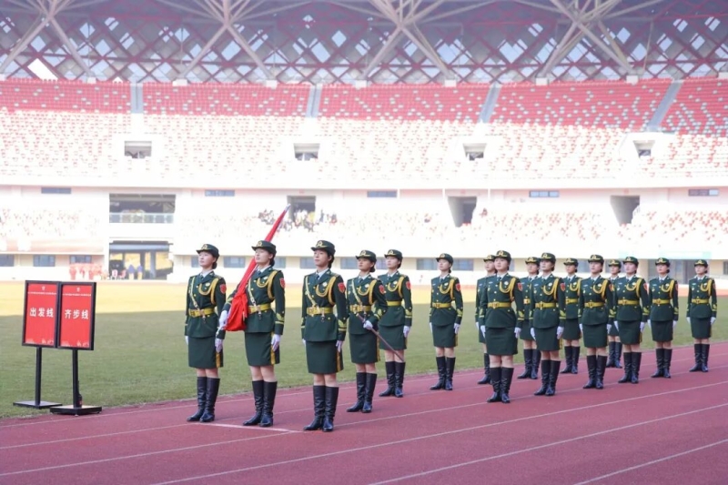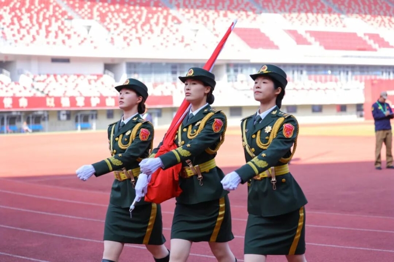 赛场上,由我校八一连18名队员组成的国旗护卫队,全体队员仪容严整、身姿挺拔,从队列展示到升旗环节,每一个步伐都坚定有力,每一个动作都精准规范,每一次转体都整齐划一。她们扎实的训练功底、高度的专注态度和默契的团队协作,充分展现了我校学子团结拼搏、勇争第一的精神风貌,最终在众多队伍中脱颖而出。
