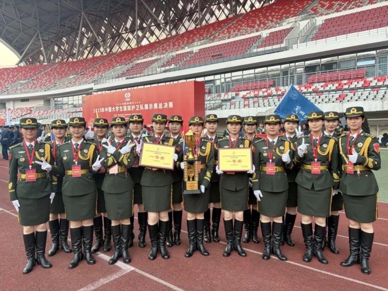 11月28日,在贵州遵义举行的2025年中国大学生国旗护卫队展示赛总决赛胜利闭幕。我校国旗护卫队凭借过硬素质,奋勇争先、发挥出色,最终在乙组(高职高专)女子组中连夺队列展示项目第一、升旗展示项目第一、团体总分第一的“三冠”佳绩。