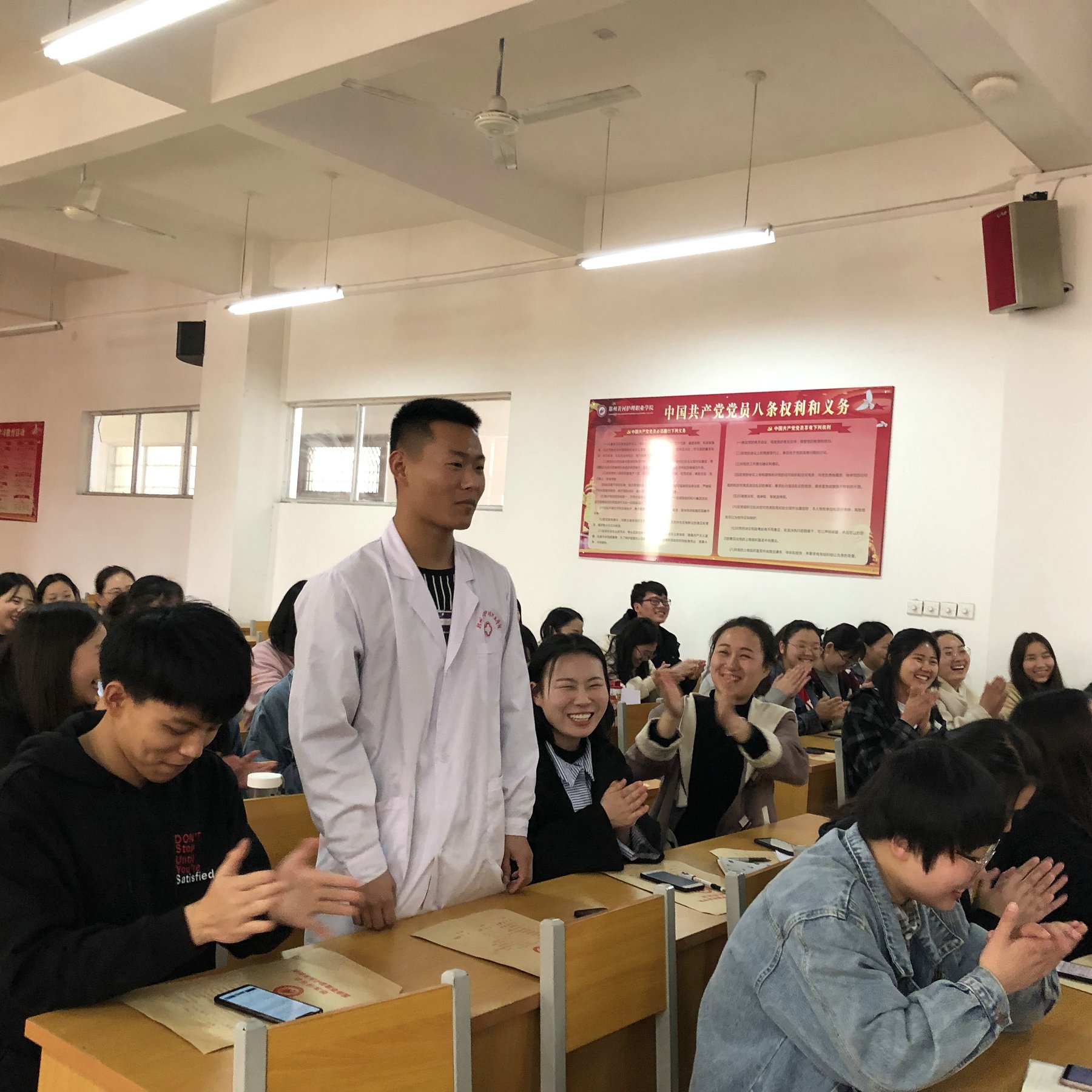 为了促进学生之间的文化交流,调动学生们读书的积极性,增加学生对国情民生的了解,护理系于3月23日中午十一点在图书楼202召开了青马工程第一学期读书研讨会。本次会议由护理系团总支书记朱琳主持,护理系第一期青马工程全体同学参与此次会议。
