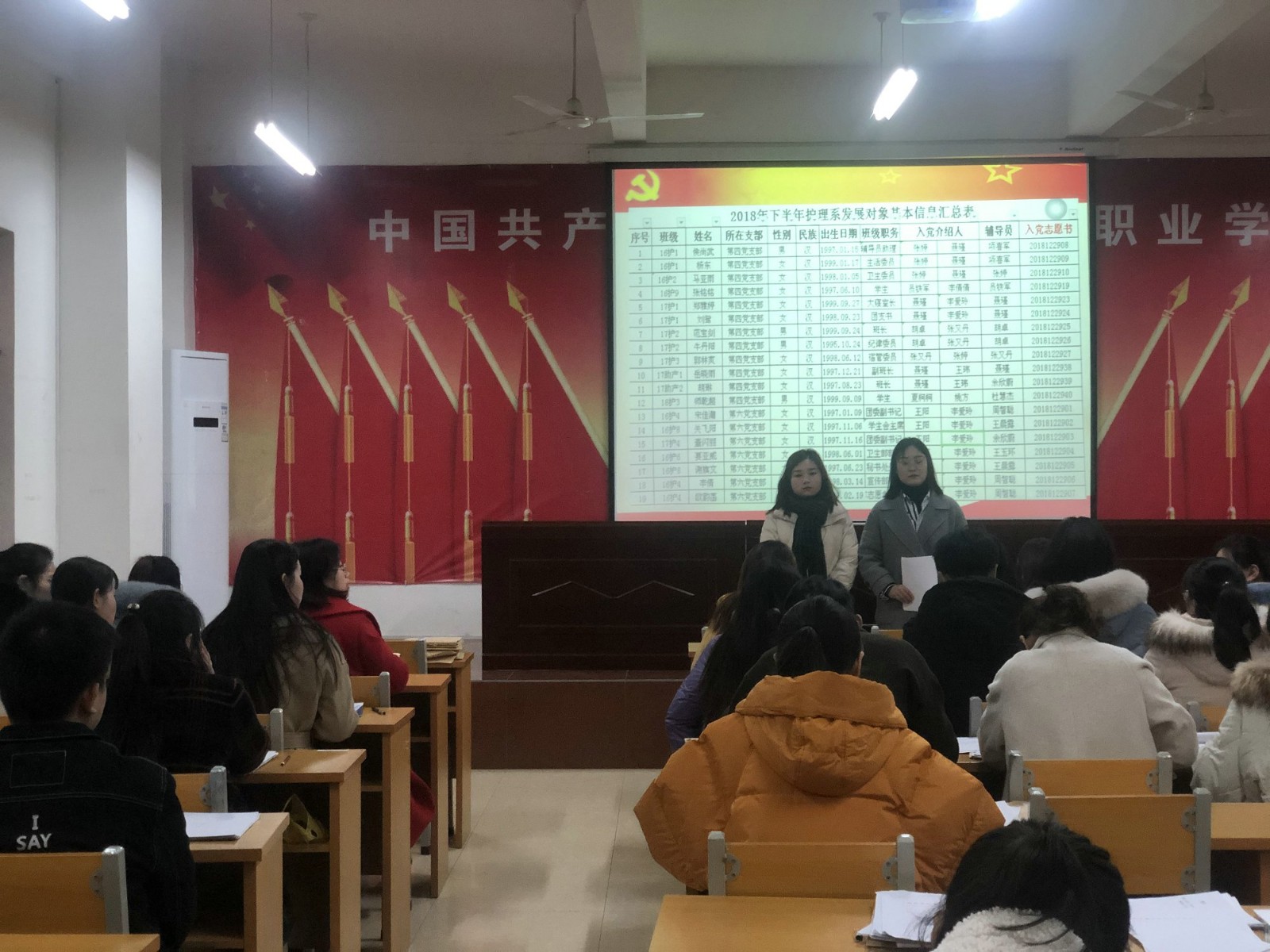 为确保党员的发展质量,护理系党总支于2019年12月14日上午9点,在图书楼202会议室和210会议室分支部举行了2019年下半年预备党员转正会议。会议本着“公平、公正、公开”的精神,严格按照党员发展各项程序执行。会议讨论了侯尚武等40名预备党员的转正事宜。党总支全体党员参与评议和投票表决。