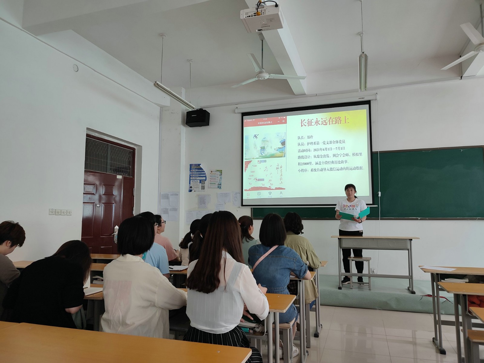 为庆祝中国共产党成立100周年,深入学习贯彻习近平新时代中国特色社会主义思想,推动“不忘初心、牢记使命”主题教育常态化、制度化,增强基层党支部的凝聚力,激发党员教师的爱国爱党热情。护理系党总支第一党支部于4月1日—7月1日利用微信小程序开展“长征永远在路上”活动,每天用“步数换里程”的方式模拟行走25000里长征路。