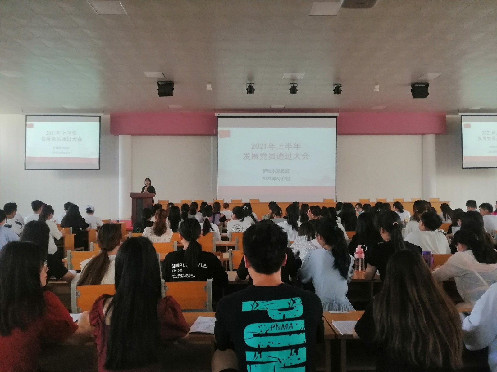 为保证发展党员的质量,有效地充实党员队伍,6月2日上午,护理系党总支于报告厅召开了2021年上半年发展党员通过大会。本次会议旨在对杨圣洁等140名发展对象能否接收为预备党员进行讨论和表决。参加本次会议的有护理系党总支的全体教师党员、各班级辅导员及140名发展对象。本次大会由护理系党总支副书记白淑坤主持。