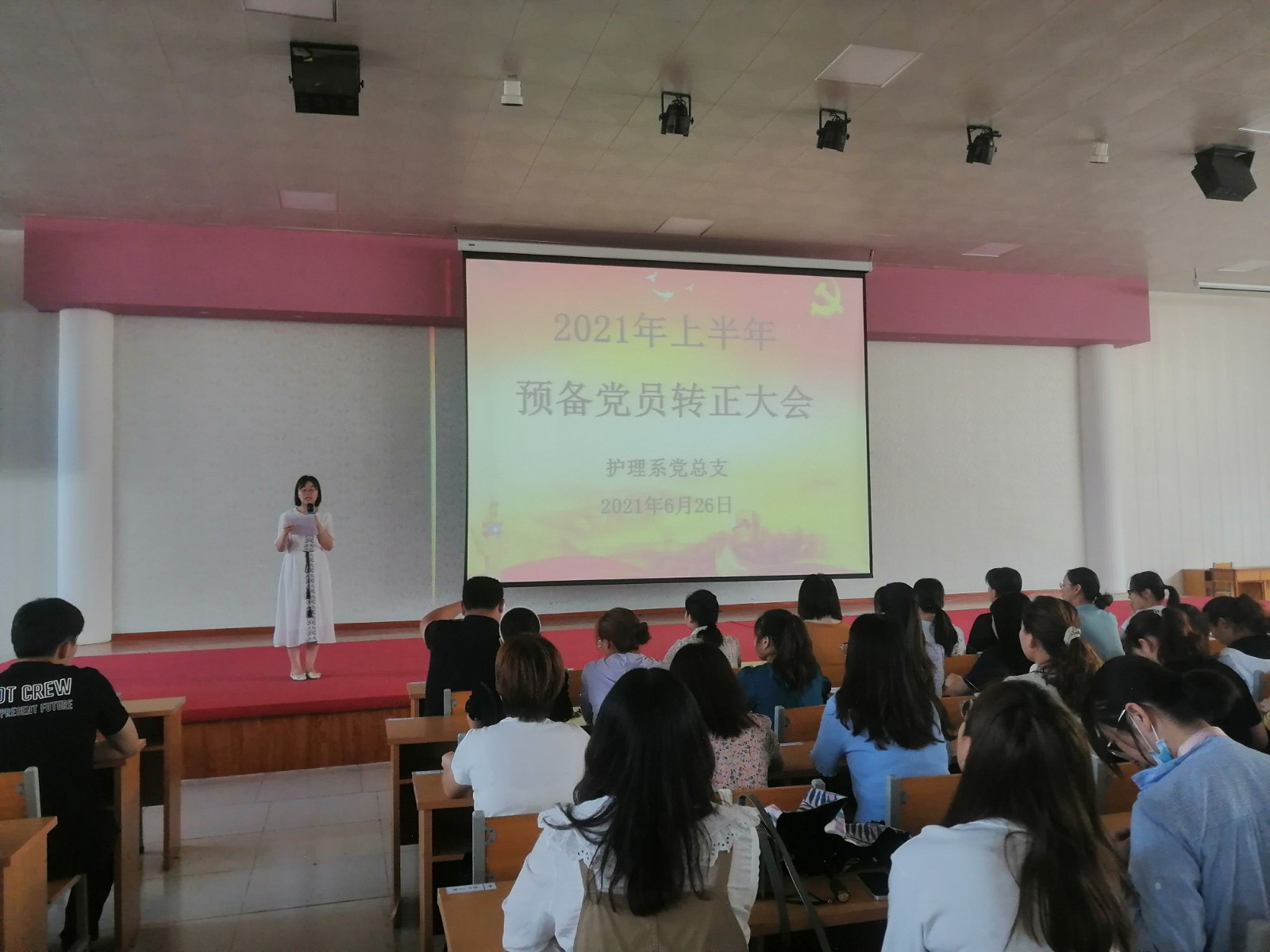 6月26日上午,护理系党总支在报告厅召开了2021年上半年预备党员转正会议,会议讨论了徐洋等91名预备党员的转正事宜。参加此次会议的有护理系党总支副书记白淑坤、护理系党总支全体党员教师及91名预备党员。会议由副书记白淑坤主持。