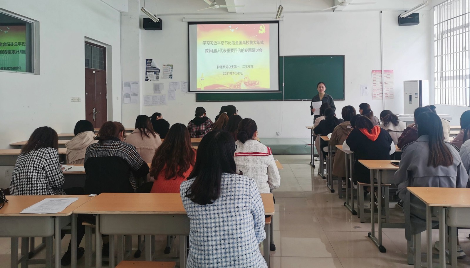 10月9日上午,护理系第一、二党支部在图书楼115室专题学习了习近平总书记重要回信精神,支部书记郑玲、余欣蔚围绕回信精神带头作研讨发言。
