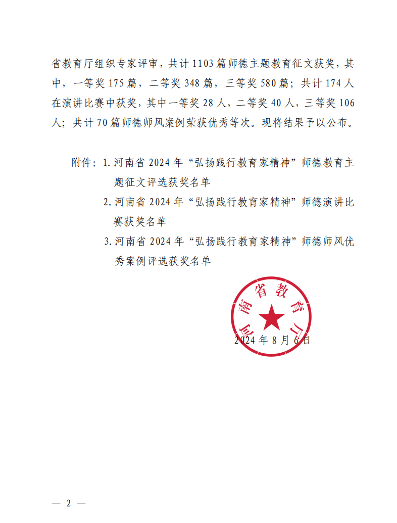 征文活动中,我系教师紧扣主题,结合自身经历,以朴实真切的文字,展现了弘扬和践行教育家精神的时代风貌。经学院遴选推荐,省教育厅组织专家评审,我系郭艳娜、张艺潇2位老师荣获二等奖。