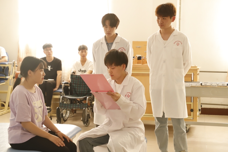 经过前期理论考核及病例分析筛选淘汰,一共有4支队伍共12名选手进入决赛。本次比赛分为病史采集、康复评定、康复治疗3个部分,参赛选手沉着冷静、操作规范、技巧娴熟、团结协作,展现出了扎实的理论基础、高超的实践技能水平。赛场上,学生们独特的精神风貌和职业素养,得到评委们的一致好评。赛后学生们表示,经过5位专业教师历时2个月的培训,理论知识与实践技能均得到了显著提高。