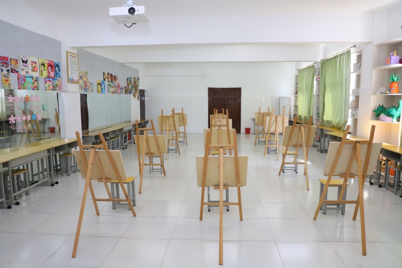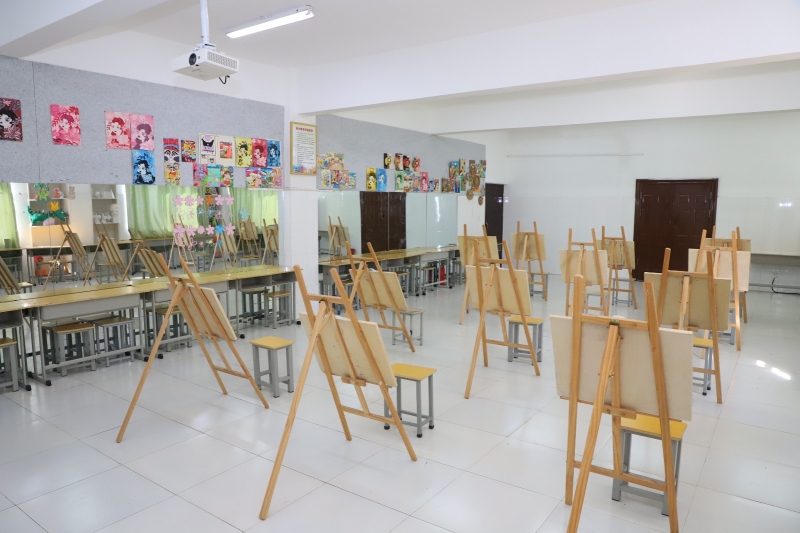 美术实训室配备专业化照明灯台、画板、画架、石膏像、水果静物模型。可开设的实训项目有幼儿美术等,为婴幼儿托育服务与管理、学前教育及专业学生提供专业的美术教学实践场所。