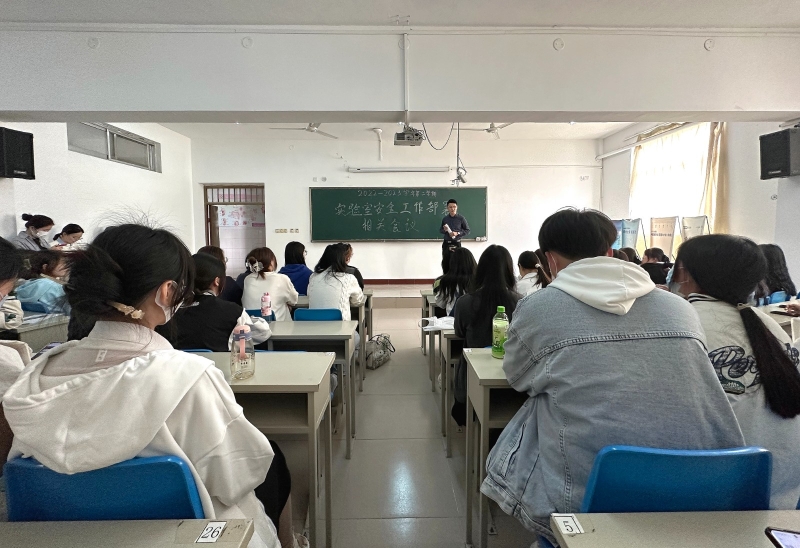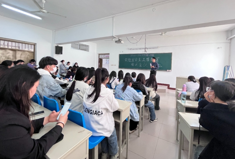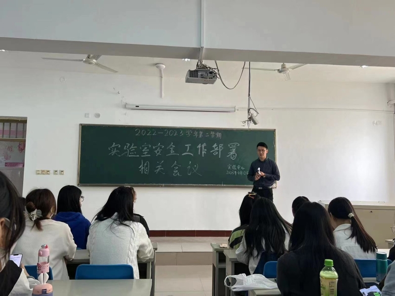 4月12日上午,实验中心在一号楼西502教室召开了实验室安全工作会议,传达学习教育部有关文件精神,安排部署实验室安全工作。本次会议由实验中心安全员师乾超主持,实验室各安全负责人和2022级各班学委参加会议。