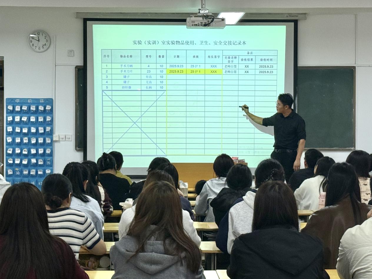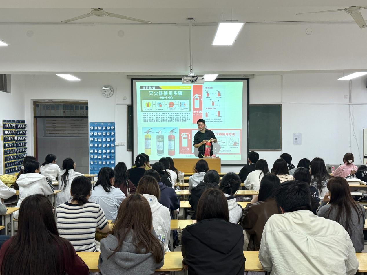 师乾超老师首先介绍了各专业实验室基本情况及实验课整体安排,随后围绕实验室规范化管理与安全防护展开详细讲解。他强调,所有进入实验室的人员都要严格遵守准入制度,严格落实实验课后断水断电要求,做好实验课交接,规范填写记录;仪器设备操作必须在实验教师指导下进行,严禁擅自违规使用;同时,要重点掌握灭火器等消防器材的规范使用方法,提升应急处置能力。