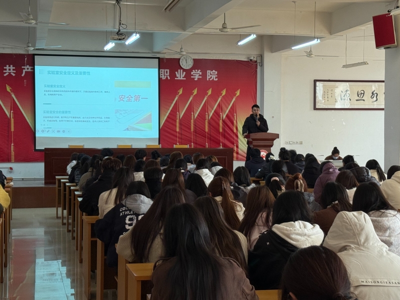 为全面筑牢学生实验室安全防护思想防线,管理处在图书楼202会议室开展实验室安全知识培训,本次培训由实训基地管理处安全员师乾超主讲,高新校区各班学委及实验组长参加本次培训。