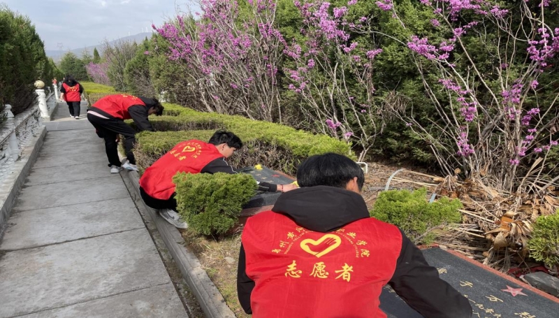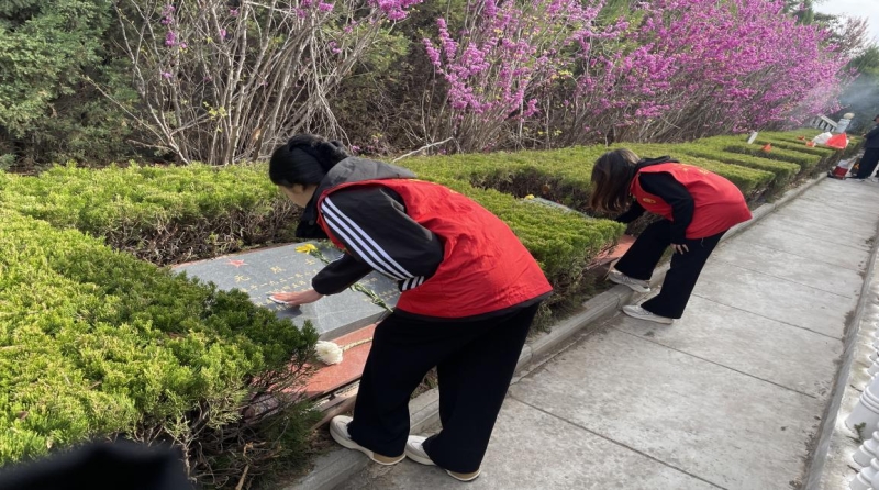 中专部团总支于4月1日上午组织优秀学生干部到新密市烈士陵园开展“缅怀革命先烈”扫墓活动。在负责人李金锁同学的组织下,同学们依次进行致辞、默哀、献花,同学们怀着悲痛而沉重的心情俯身擦拭革命烈士的墓碑,缅怀那些为祖国解放和人民的安宁而英勇牺牲的战士。在擦拭烈士英雄墓碑过程中,他们也了解到先辈们在战场上的丰功伟绩,深刻认识到先烈们为了民族独立和人民幸福所做出的巨大牺牲,更加珍惜当下的幸福生活。活动结束后,学生主动提出要对陵园的枯枝落叶等杂物进行清理,陵园的工作者对我们学生这样的举动表示肯定和赞扬。